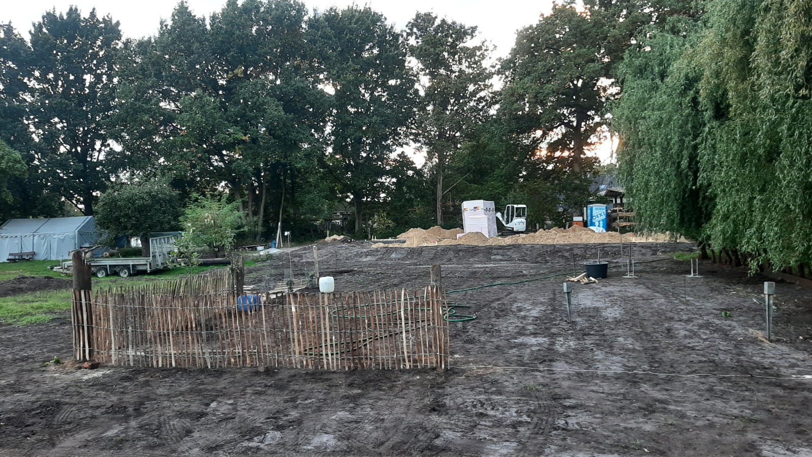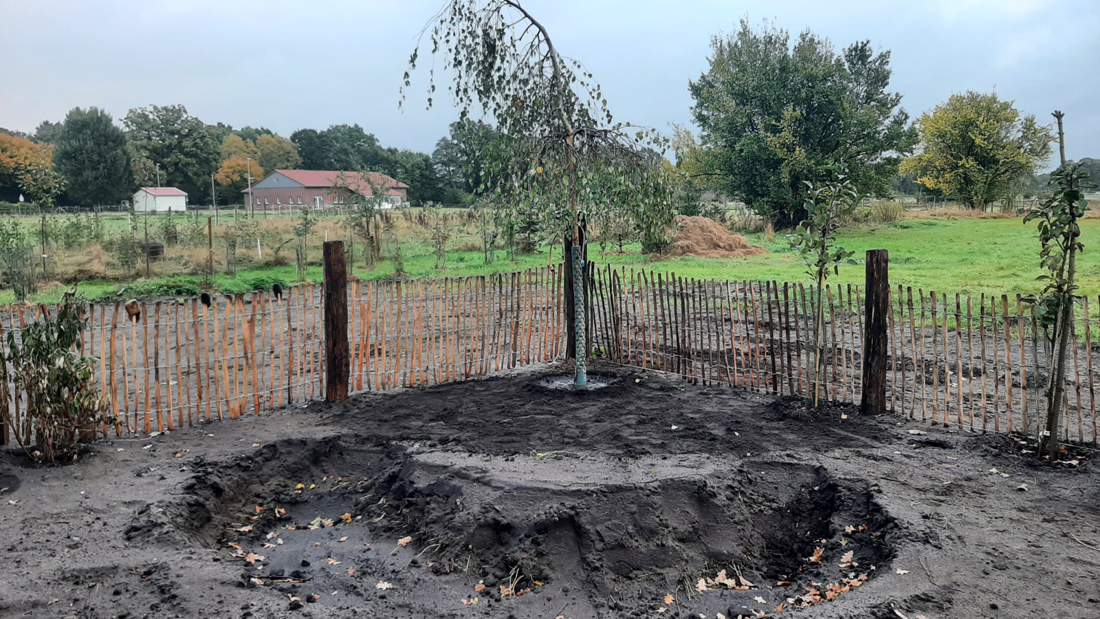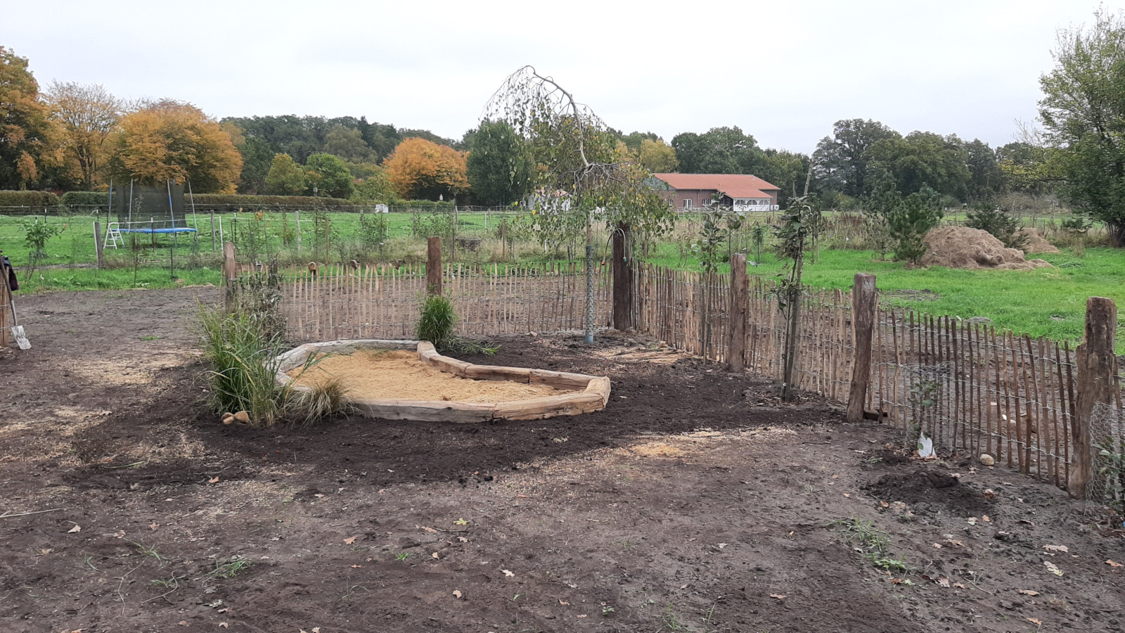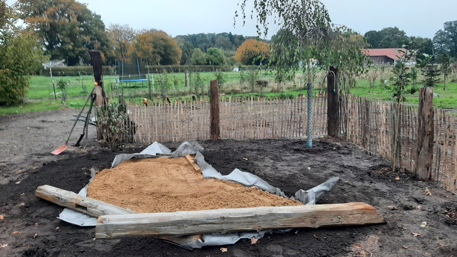 Trauerbirke gepflanzt, Sandkiste ausgekoffert