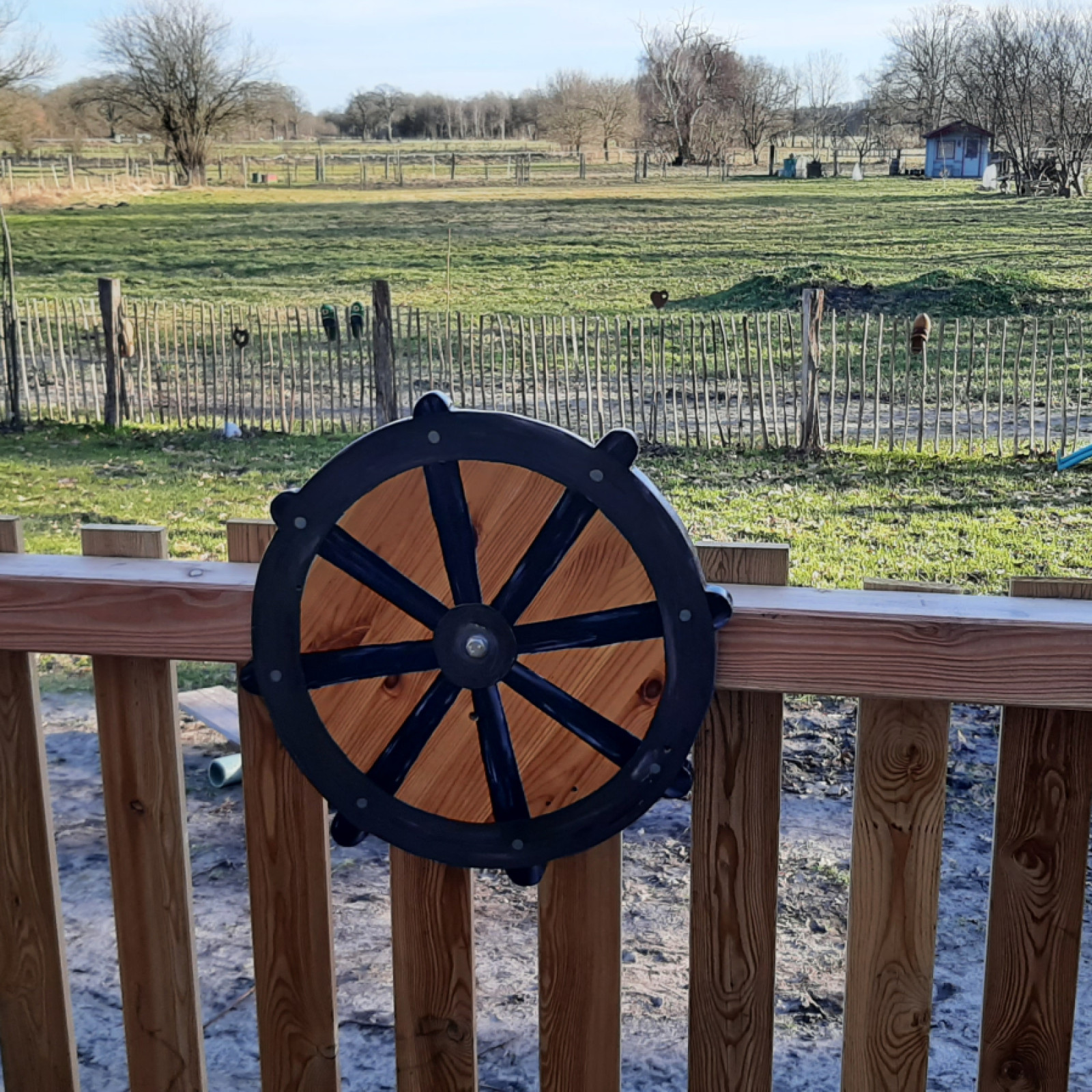Als Spielzeug biete ich neben dem klassischen Sandkastenequipment und Fahrzeugen viele natürliche Materialen, wie z.B. Holzstämme, Äste, Steine, Holzscheiben, Kokosnussschalen, Stroh und Kastanien an. Diese werden dann immer weiter durch die Sammlung bei Ausflügen in Wald, Heide, Sandkuhlen, Wiesen oder auf dem Grundstück ergänzt. Unter der Brücke wachsen Kräuter zum Riechen, Beobachten und Probieren. Aber auch die kleinbleibenden Obstbäume am Rande des Spielbereichs laden dazu ein.